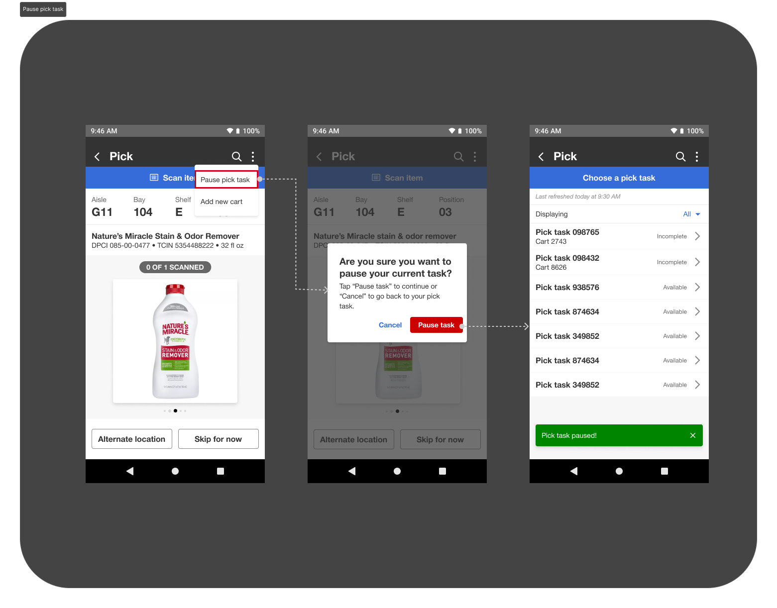 Pause pick task