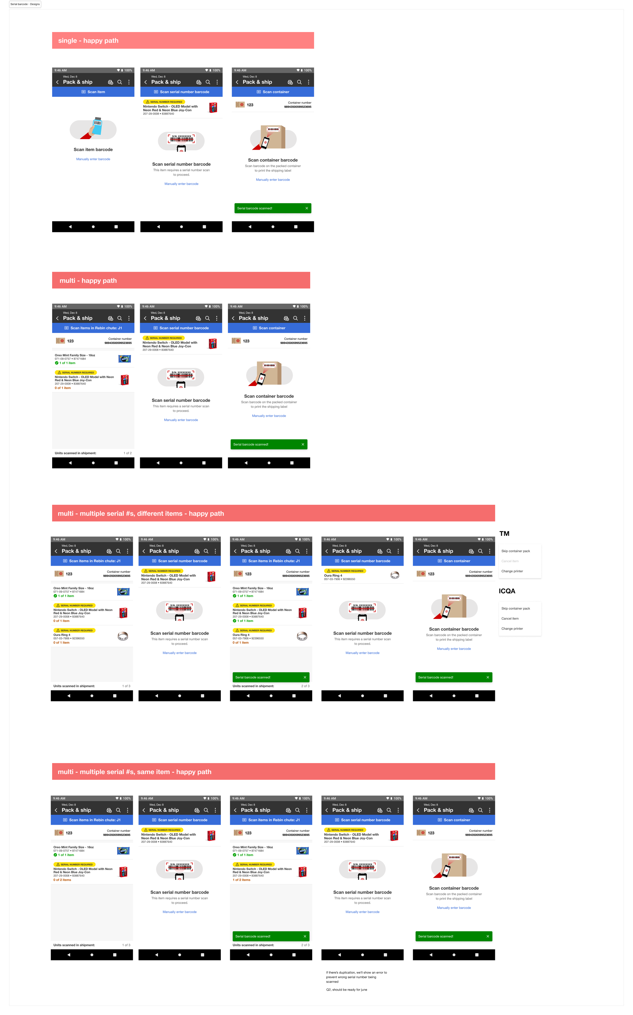 I partnered with the product team, backend engineering, and cross-functional partners to define a scalable solution. My goal was to build on workflows team members were already familiar with while adding clear safeguards for high-value items. The resulting experience introduced visual tags to flag serial-tracked items, product imagery, item detail banners to increase confidence, and a dedicated serial-number scanning step.
