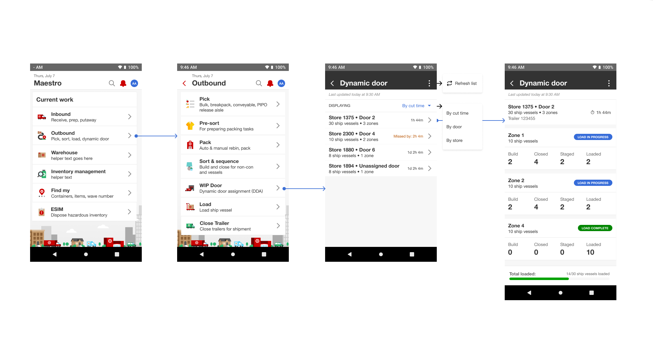 This was a side project I initiated and led to update and replace existing Maestro graphics so they better reflected the Supply Chain environment. The graphics in use at the time were largely adapted from MyDay and designed for Store workflows, which often required Supply Chain designers to manually modify them to fit Middle Mile use cases.