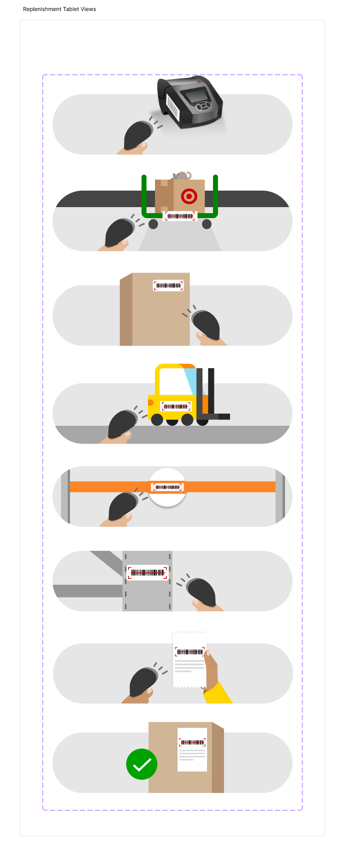 To address this, I proposed and created a set of global graphics designed specifically for Maestro, establishing visual consistency across Supply Chain experiences. The graphics were intentionally designed and sized to work seamlessly across both handheld devices and tablets.